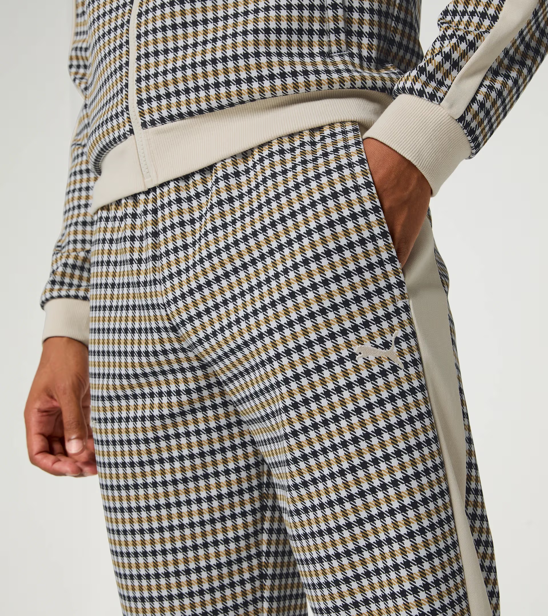 As lendárias calças de moletom T7 do mundo PUMA se aliam ao charme clássico do Targa, inspirado no tecido original do estofamento dos bancos em Pepita que estava disponível para a primeira geração do Porsche 911 Targa. Em combinação com o design icônico do T7, o resultado é um visual que combina caráter esportivo e Heritage.