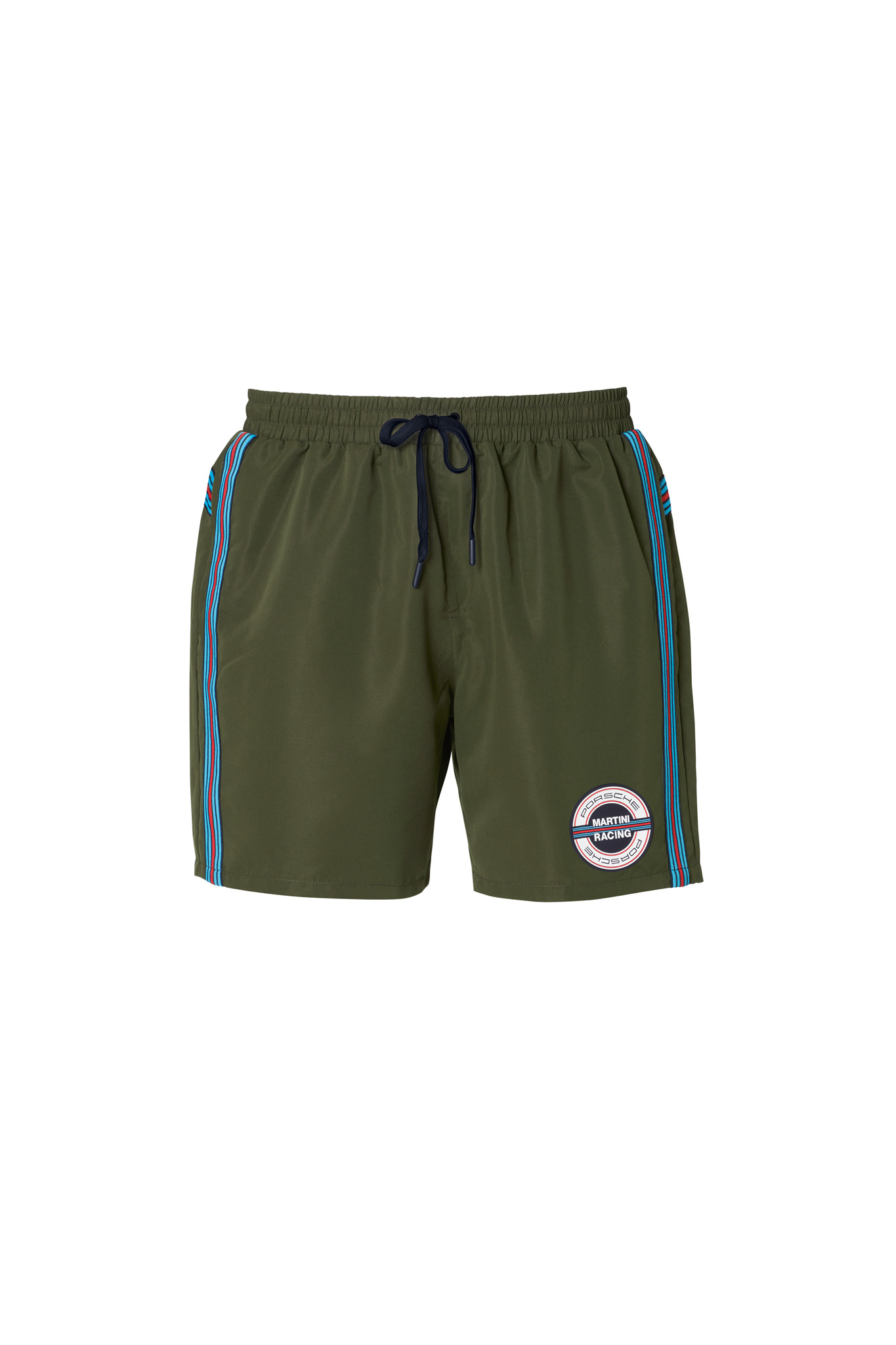 Mergulhe na água refrescante: os calções de banho masculinos da coleção Porsche Lifestyle MARTINI RACING® são a companhia perfeita para um mergulho rápido ou longas sessões de treino. Graças ao tecido de secagem rápida e à cueca interna em malha integrada, o conforto é tão importante quanto a diversão. As faixas MARTINI RACING® nas laterais e nas costas, juntamente com a estampa do logotipo da Porsche, garantem um visual estiloso na água.